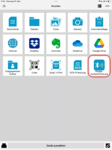 - Wähle im Homescreen der App unten in der Mitte einen Drucker